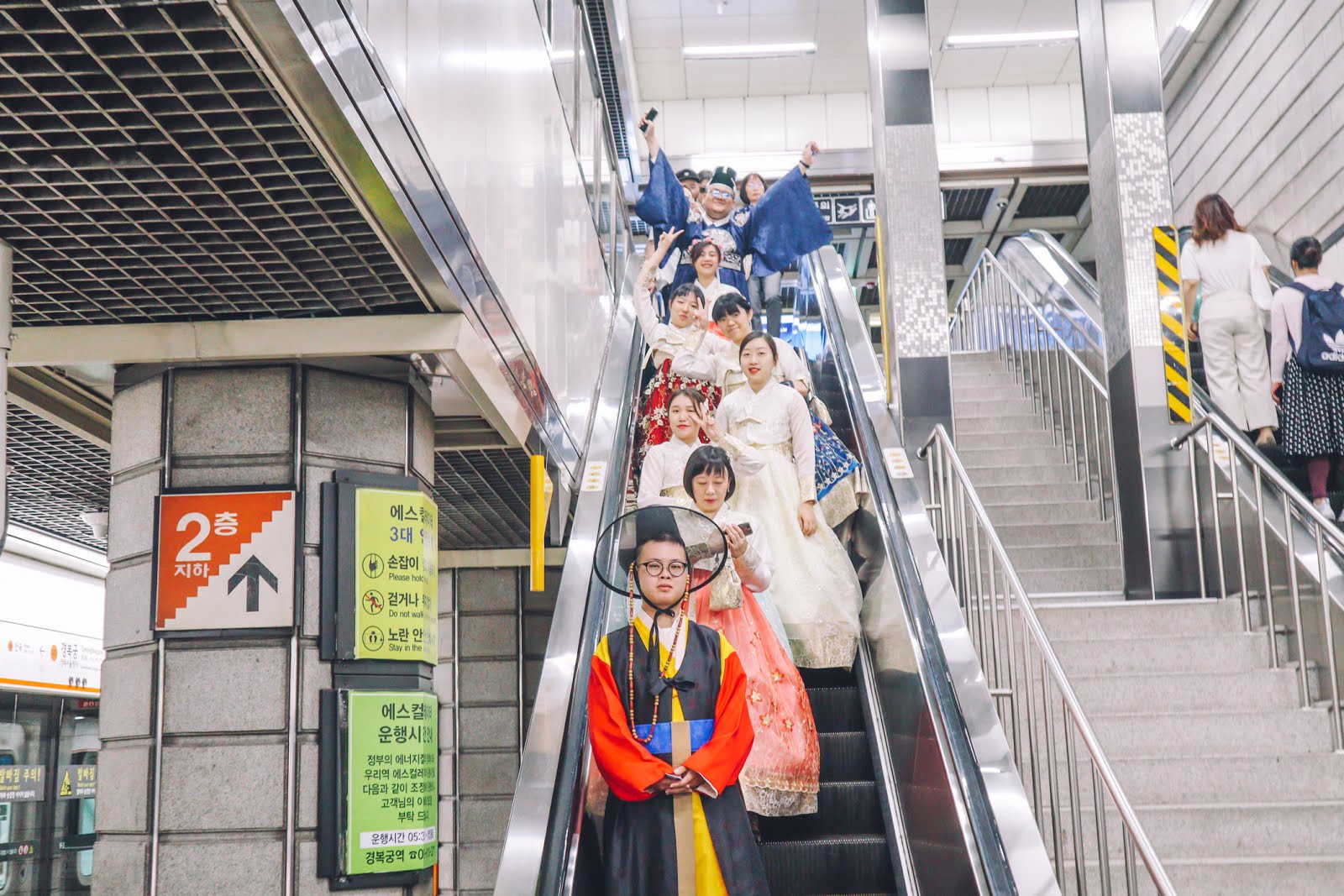要搭乘一班捷運,在路上穿著韓服真的很引人注目